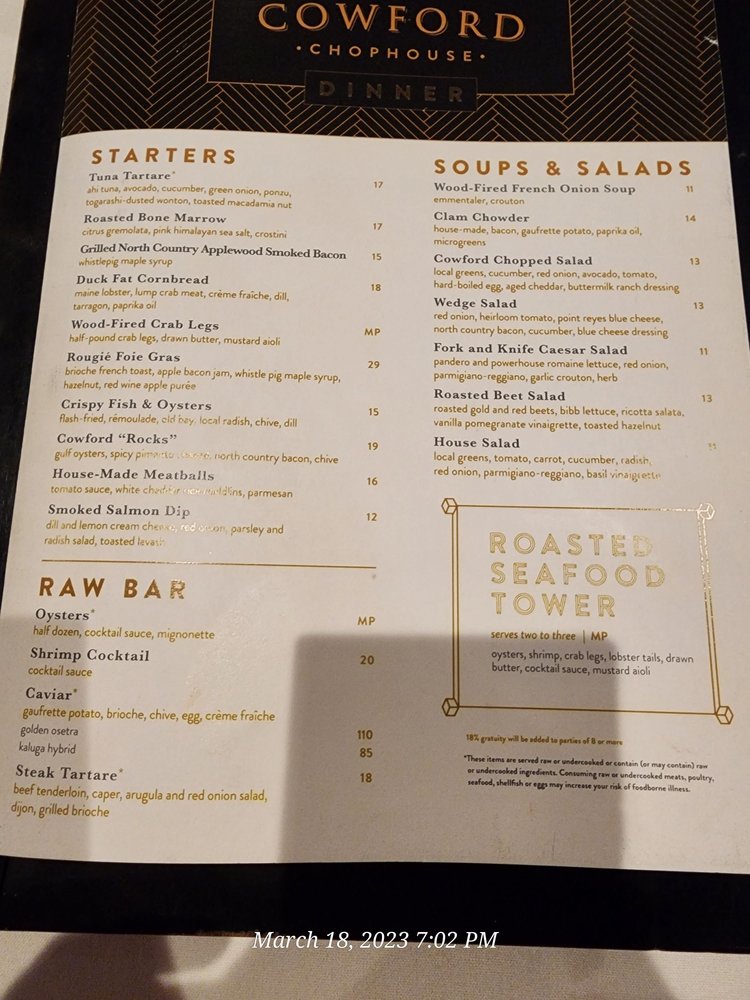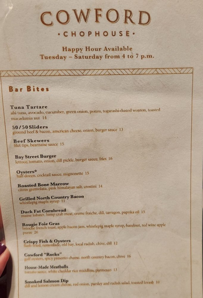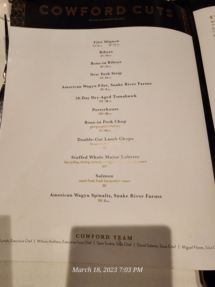 Cowford Chophouse Menu